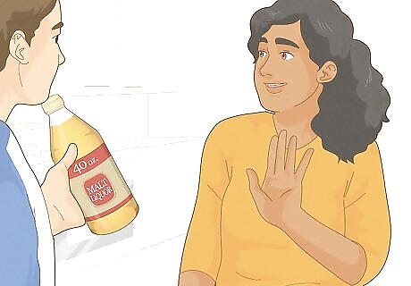 If you’re too drunk or can’t play the game, don’t be afraid to tap out. It’s okay to stop playing if you don’t feel comfortable. Whether you’re feeling woozy from the booze or simply can’t hang, it’s completely fine to tap out and say you can’t do it. Just let a trusted friend or peer know that you’d like their help taking the drinks off your hands. If they try to peer-pressure you when you ask them to take the bottles off, stand your ground and firmly let them know that you’re done playing.
