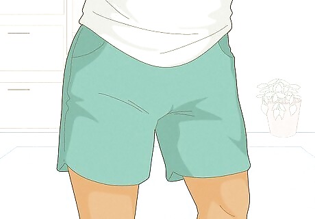 Wear shorts so it’s easier to pee. Since you can’t use your hands to remove your pants when you need to pee, wear shorts so you can easily kick them off if your bottles aren’t empty. Not only does this keep you from wetting your pants, but it also keeps you from holding in your pee, helping lower the risks of urinary tract infections, kidney stones, and a wet, embarrassing night. This is especially useful if you can’t find a partner to help.