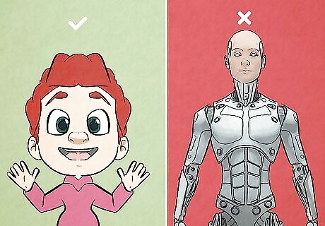 The easiest way to avoid Uncanny Valley is to make characters less life-like. If you’re a designer, people may reject your work if it triggers the Uncanny Valley effect. The best way to avoid this is to create characters that are obviously artificial—perhaps by keeping them a little more cartoon-like. You can also attempt to make the characters so realistic that they can’t be distinguished from humans, although this has so far proven difficult to execute. Avoid mixing life-like and obviously artificial features. For instance, if your character looks like a robot but speaks with a near-perfect human voice, people may find it unsettling. Uncanny Valley can also happen if a character looks human but has the wrong skin texture. Pay attention to movement and expression. If your character looks like a human but moves in a mechanical way, it can create an Uncanny Valley effect. Similarly, if your character doesn’t emote appropriately, it can seem dead or robotic.